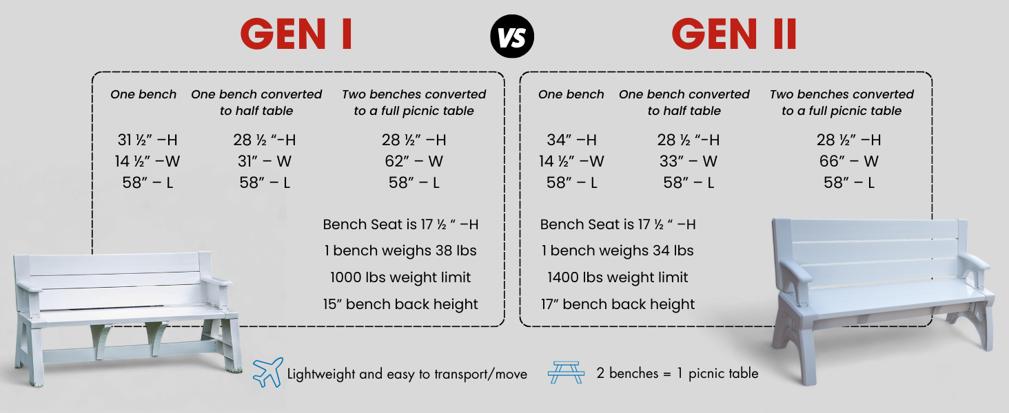 - NOTICE: This price is for 1 Convert A Bench. Purchase 2 benches in order to make a complete table.