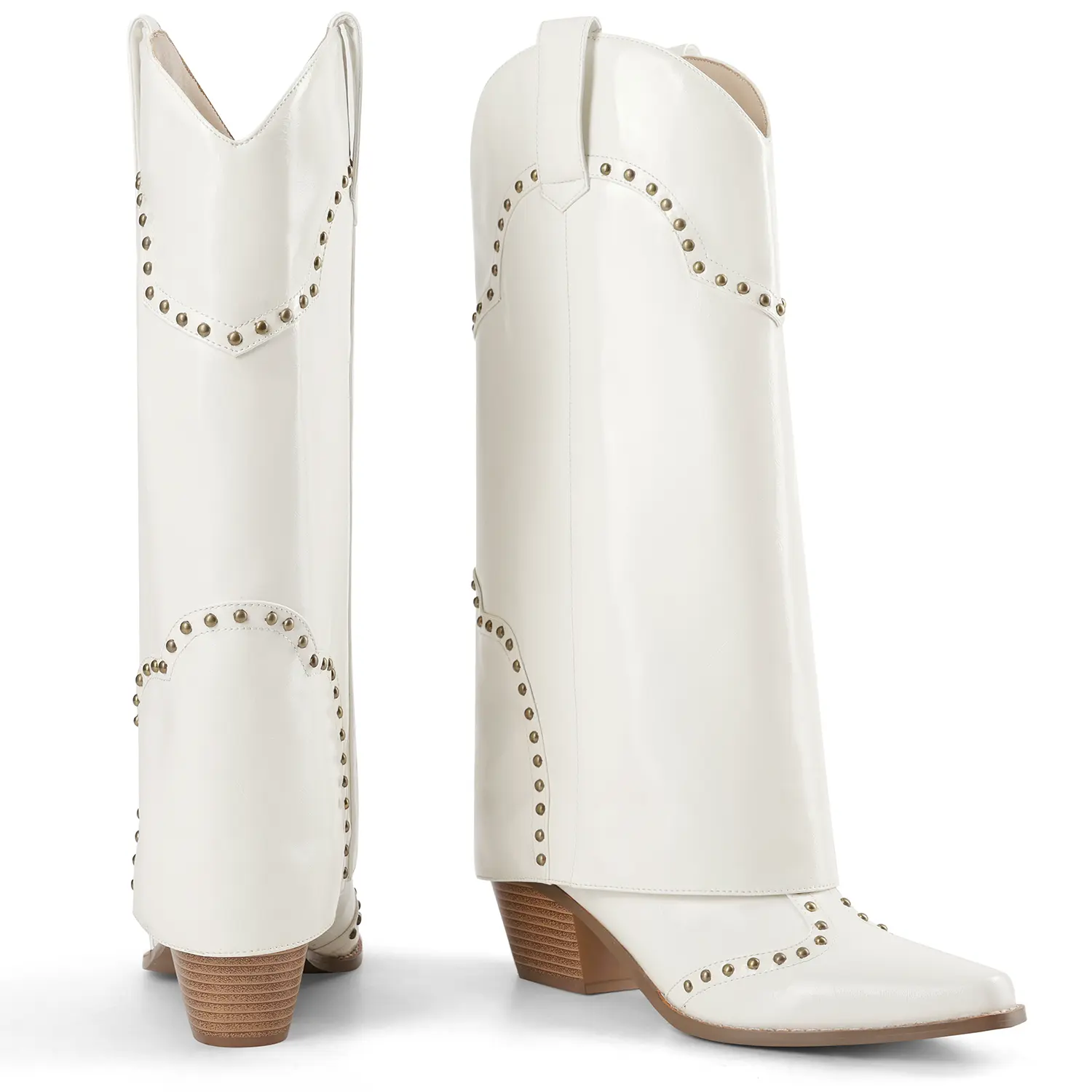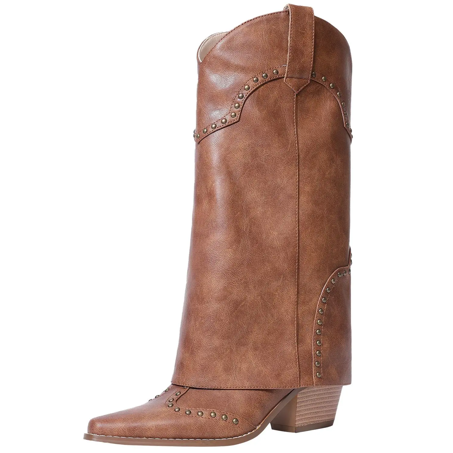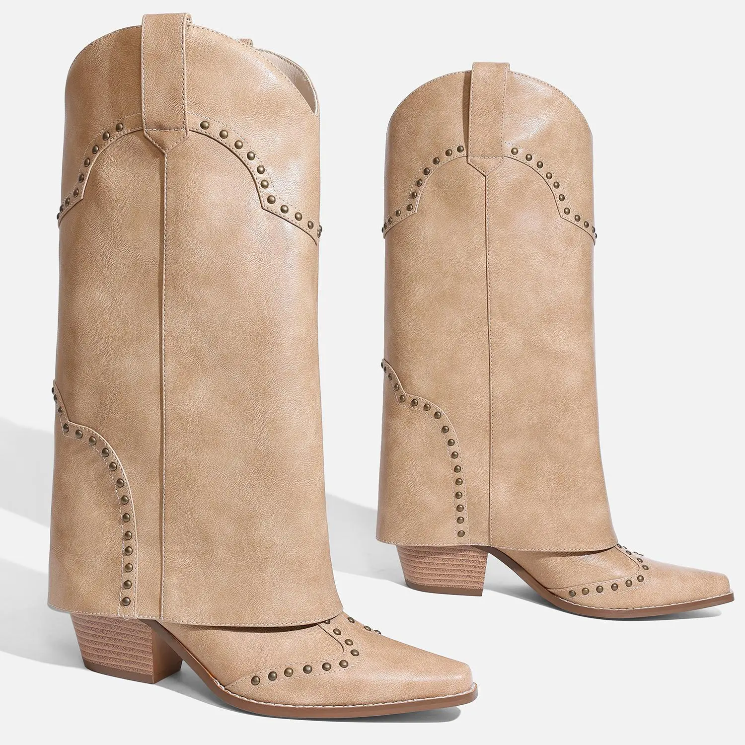 ![RONILURN Women's Fold-Over Mid-Calf Chunky Heel Snip-Toe Cowboy Cowgirl Pull-On Studded Boots Beige Casual Footwear Stylish RONILURN Women's Fold-Over Mid-Calf Chunky Heel Snip-Toe Cowboy Cowgirl Pull-On Studded Boots Beige Casual Footwear Stylish]()