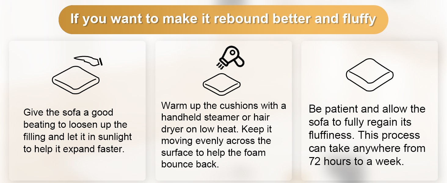 Skip the hassle of furniture assembly! Our fully assembled sofa arrives ready to use—just unbox, fluff, and relax. Within 48-72 hours, the vacuum-compressed cushions expand to full, plush comfort, perfect for instant lounging. -